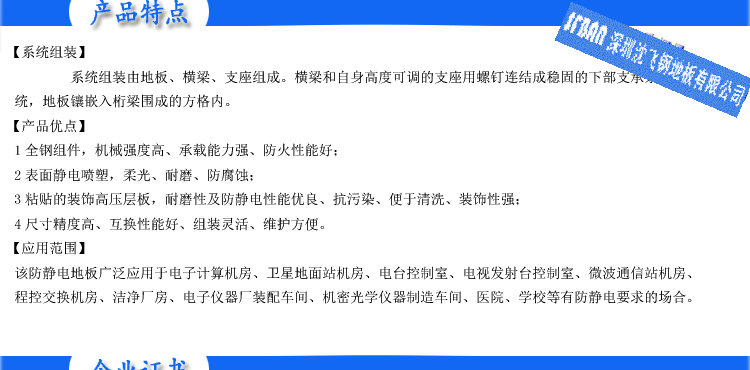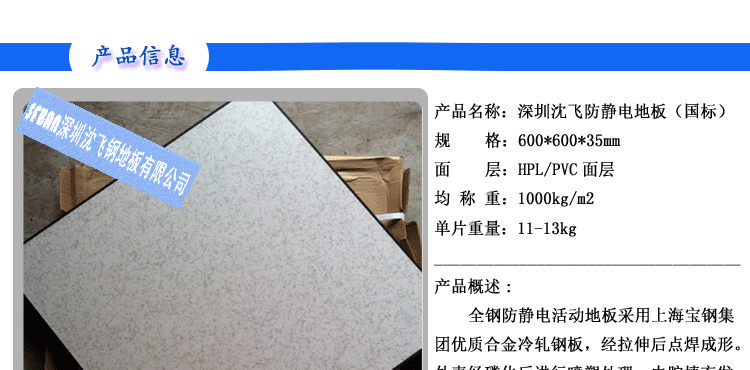 全鋼防靜電地板 【規(guī)格型號】 600×600×35mm 【產(chǎn)品概述】 全鋼防靜電活動地板采用上海寶鋼集團優(yōu)質(zhì)合金冷軋鋼板,經(jīng)拉伸后點焊成形。外表經(jīng)磷...
