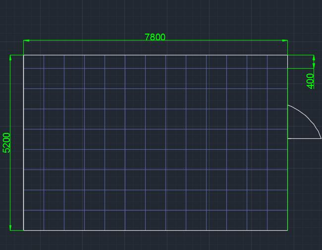 鋪設需要損耗的地板就是指安裝防靜電地板的最后靠墻邊的地板切割過后留下來又不能再用的地板,這些地板我們只能丟掉了。哪怎么才能更省的減少防靜電地板損耗呢,只要我們把機房的圖紙畫出來詳細的計算一下各邊角需要掉的損耗,在安裝過程中應用好可以再次鋪設的損耗地板。比如圖下一個機房的尺寸:5200mm*7800mm ,完成面15公分,門口1米外開。